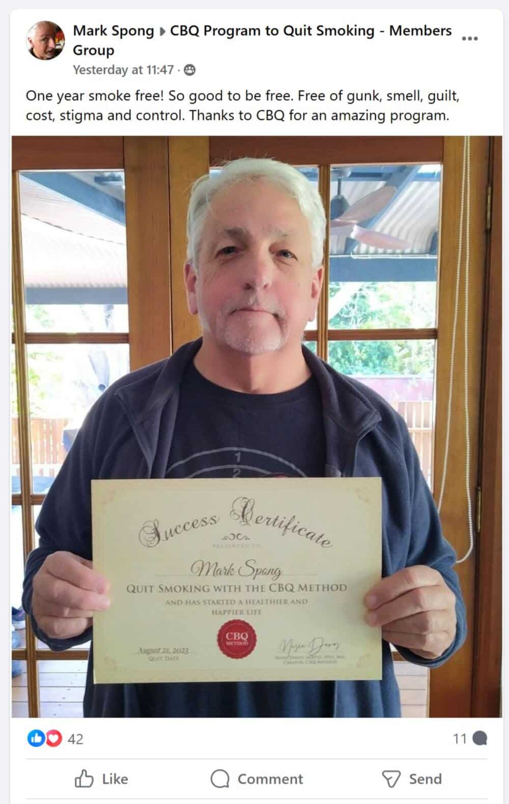 This week, CBQ Program member Mark Spong from Canberra, Australia shared with our members group his success photo to celebrate his 1 year-milestone!