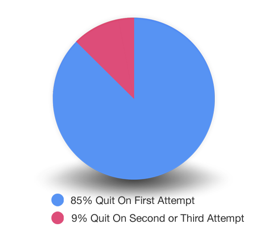 The CBQ method™ has 94% success rate*. 85% of smokers quit permanently on their first attempt, and 9% quit on their second or third attempt.