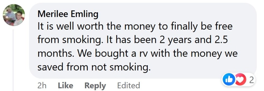 Merilee said “on the 10th day I was happy to throw my smokes out. Thank you! I Amazing results with your program.” Over 2 years after quitting smoking, she bought an RV with the money she saved!