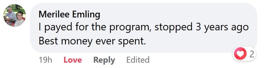 Two days ago, CBQ Program member Merilee Emling from Ohio, US, celebrated 3 years smoke-free! Merilee used to smoke a pack and a half a day for over 45 years. While searching online for ways to quit, she came across the CBQ Program, and after more in depth research she decided to join… and it was so worth it!