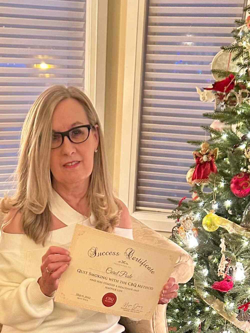 Yesterday, CBQ Program member Carol Poste from Ontario, Canada, celebrated 3 years smoke-free! Carol was a smoker for nearly 50 years and suffered from chronic pain. For years, she used smoking as a pain relief until she learned that smoking was making her chronic pain worse! Carol’s surgeon told her “that my spine disks have deteriorated from smoking all these years!!!” With the stress and pressure of an upcoming spine surgery, Carol started looking for ways to quit smoking. After assessing all her options, she decided to join the CBQ Program, and the rest is history!