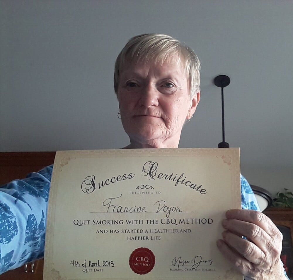 This week, CBQ Program member Francine Doyon from Ontario, Canada, celebrated 6 years smoke-free! A lifelong smoker, Francine broke free after joining the CBQ Quit Smoking Program. She hasn’t smoked a cigarette since.