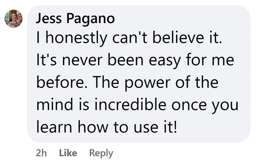 “I honestly can’t believe it. It’s never been easy for me before. The power of the mind is incredible once you learn how to use it!”