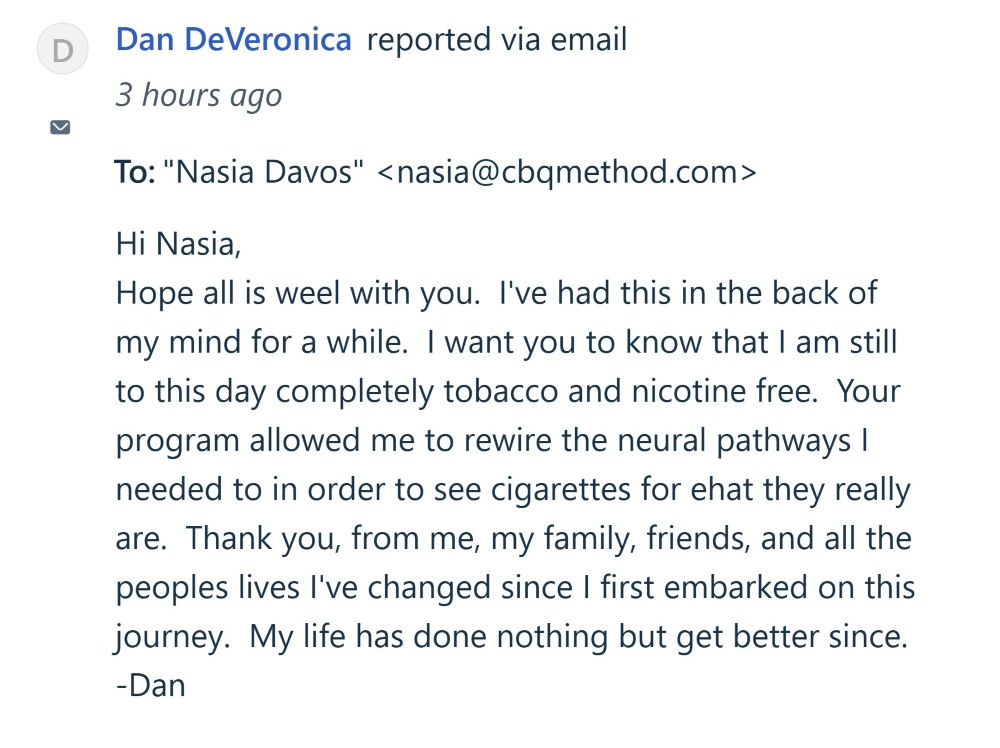 Then, he found the CBQ Quit Smoking Program, what I shared resonated with him, and he decided to join.