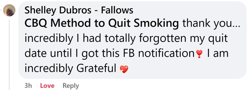 Going from feeling ‘hopeless’ in all my former unsuccessful quit attempts to ‘hopeful’ when I came across your program, to being able to be ‘helpful’ now to others is truly an incredible feeling.