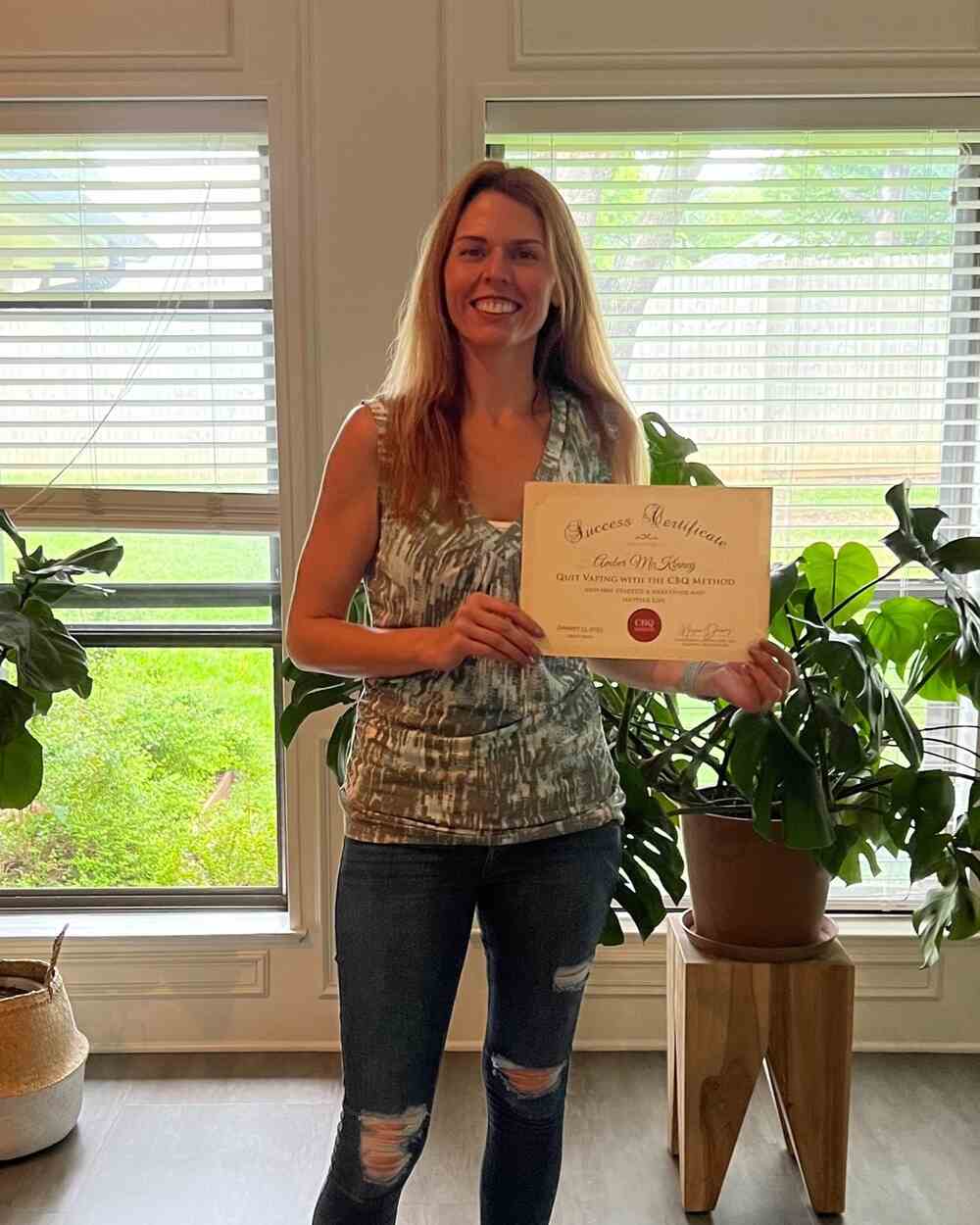 CBQ Program member Amber McKinney from Texas, US, celebrated 2 years nicotine-free! Amber was addicted to nicotine for 20 years. She never really tried to quit vaping because she didn’t believe she could. After seeing success stories from CBQ Program members, she decided to join the program and succeeded!