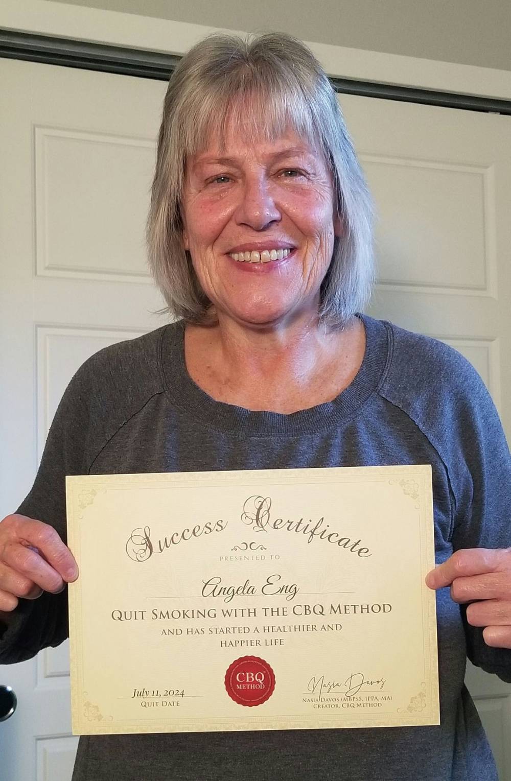 This week, CBQ Quit Smoking Program member Angela Eng from Colorado, US, celebrated 1 year smoke-free! Angela was a sworn smoker for over 46 years. After trying everything to quit, from Chantix to hypnosis, she started believing nothing could ever work for her.