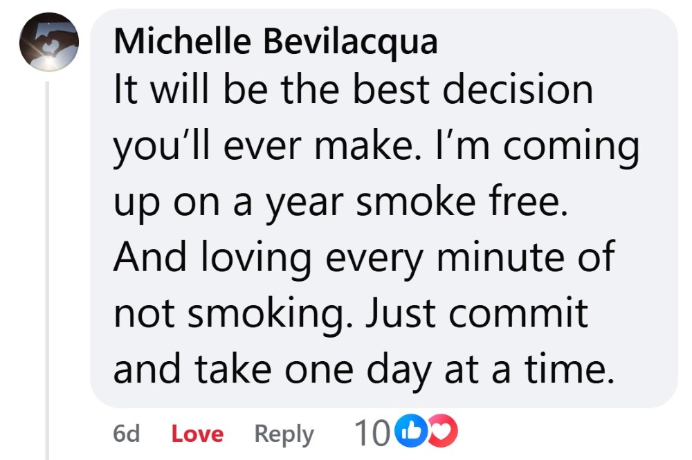 This week’s tip comes from CBQ Quit Smoking Program member Michelle Bevilacqua from South Carolina, US, who celebrated 1 year smoke-free this week.