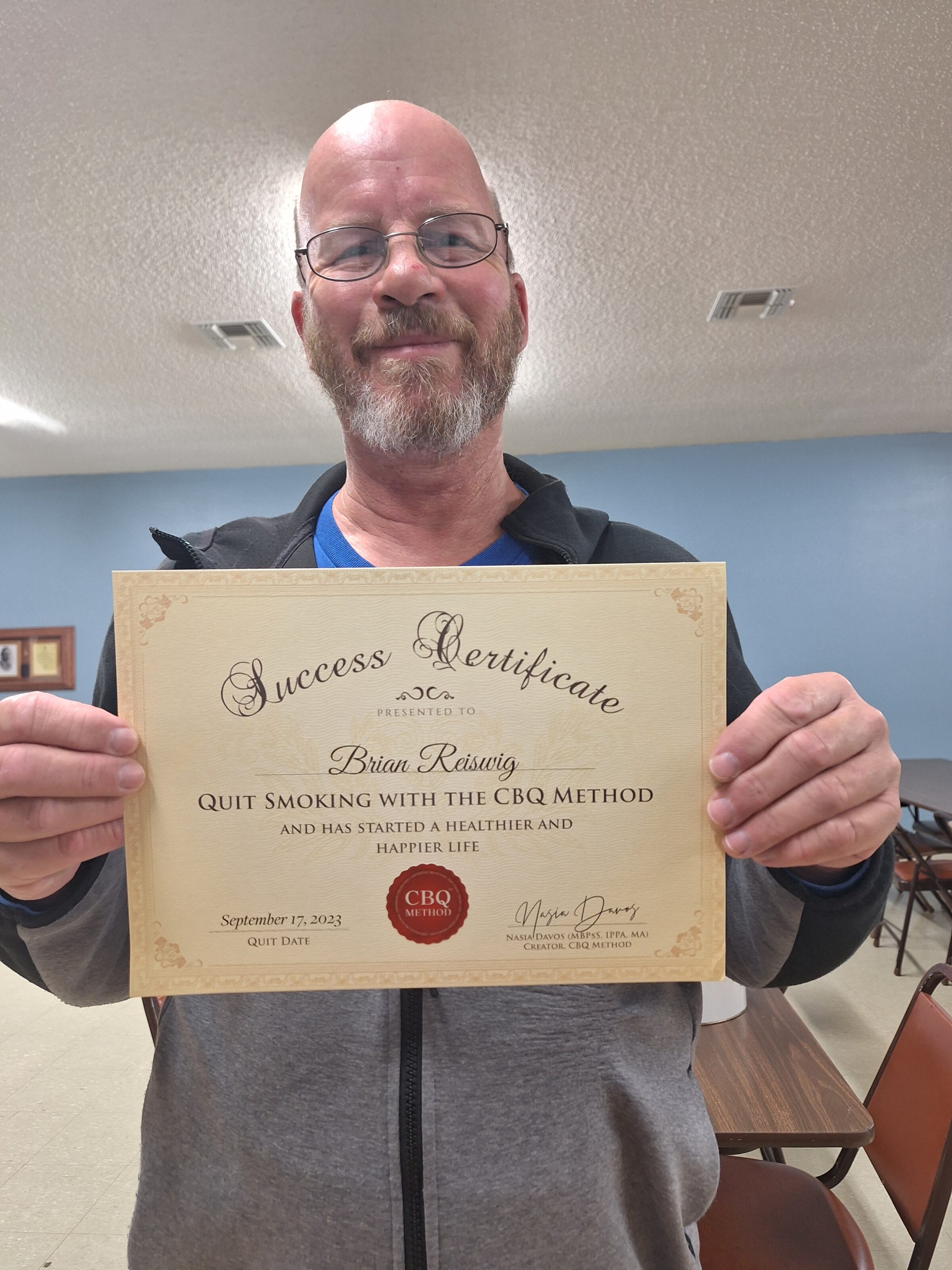 This week, CBQ Program member Brian Reiswig from Oklahoma, US, celebrated 6 months smoke-free after smoking for 52 years!