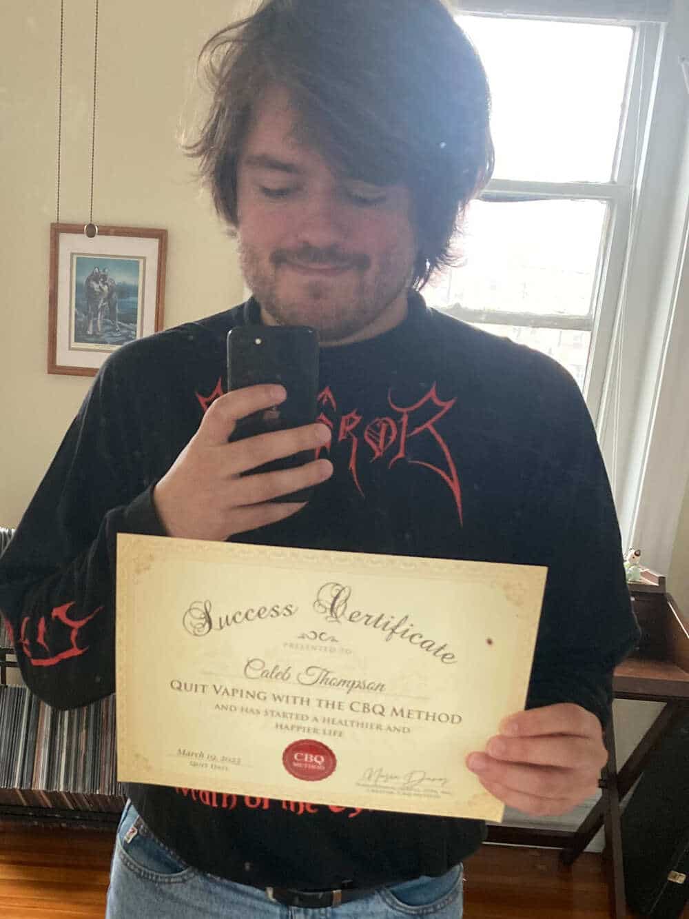 Yesterday, CBQ Program member Caleb Thompson from Virginia, US, celebrated 1 year vape-free! Caleb was addicted to vaping and never thought he’d quit let alone find it easy! This is what he said: “I’m seriously so, so happy with your program. I never, ever thought I’d be able to quit vaping at all, much less quit so easily but I never even have come close to relapsing!” “This is easily the best-working product in my life and I couldn’t be happier.”
