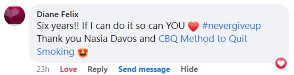 I don’t like smoking or hate smoking…….I just choose not to smoke any more. I am happy with my decision to choose freedom and would encourage anyone who wants the benefits of being a non-smoker to start this journey. You will start feeling like the real, best, healthiest version of you within a very short time!”