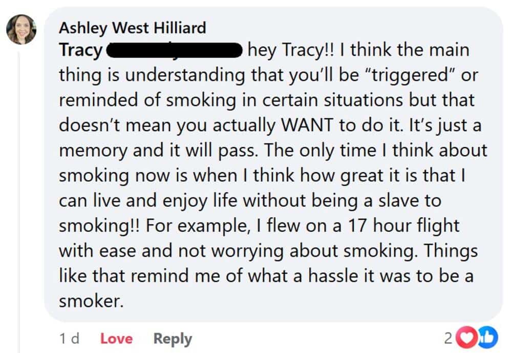 As a BONUS, this was Ashley’s incredible quit smoking tip: