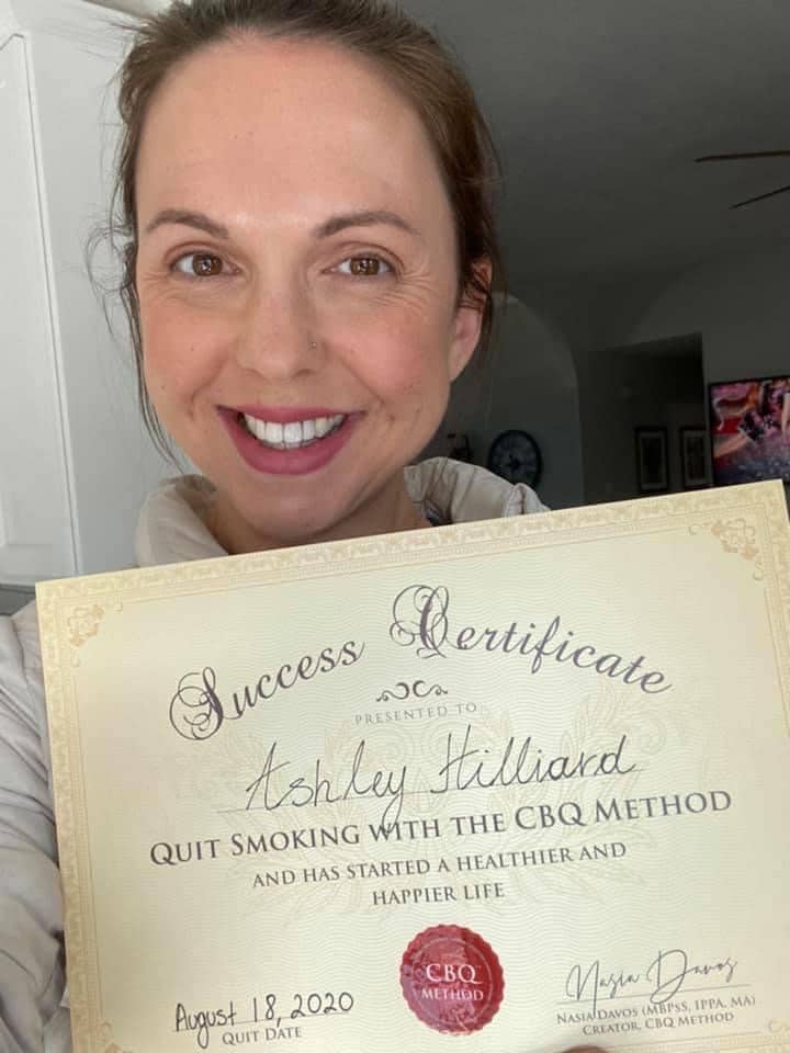 Ashley was terrified of quitting smoking. Even though she’d successfully become sober over a decade ago, quitting smoking was the one thing (she thought) she couldn’t do. Before an attempt, she would cry to her husband telling him how afraid she was. After joining the CBQ Program, she realized that there was nothing to be afraid of!