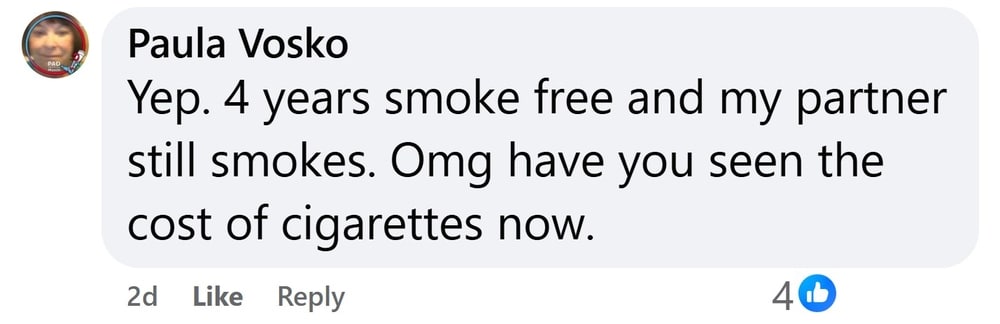 Paula smoked for 50 years, and has had zero struggle remaining a non-smoker even though her partner still smokes.