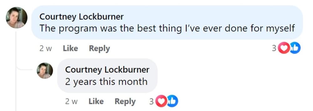 A couple of weeks ago, Courtney shared that the program is the best thing she’s done for herself.