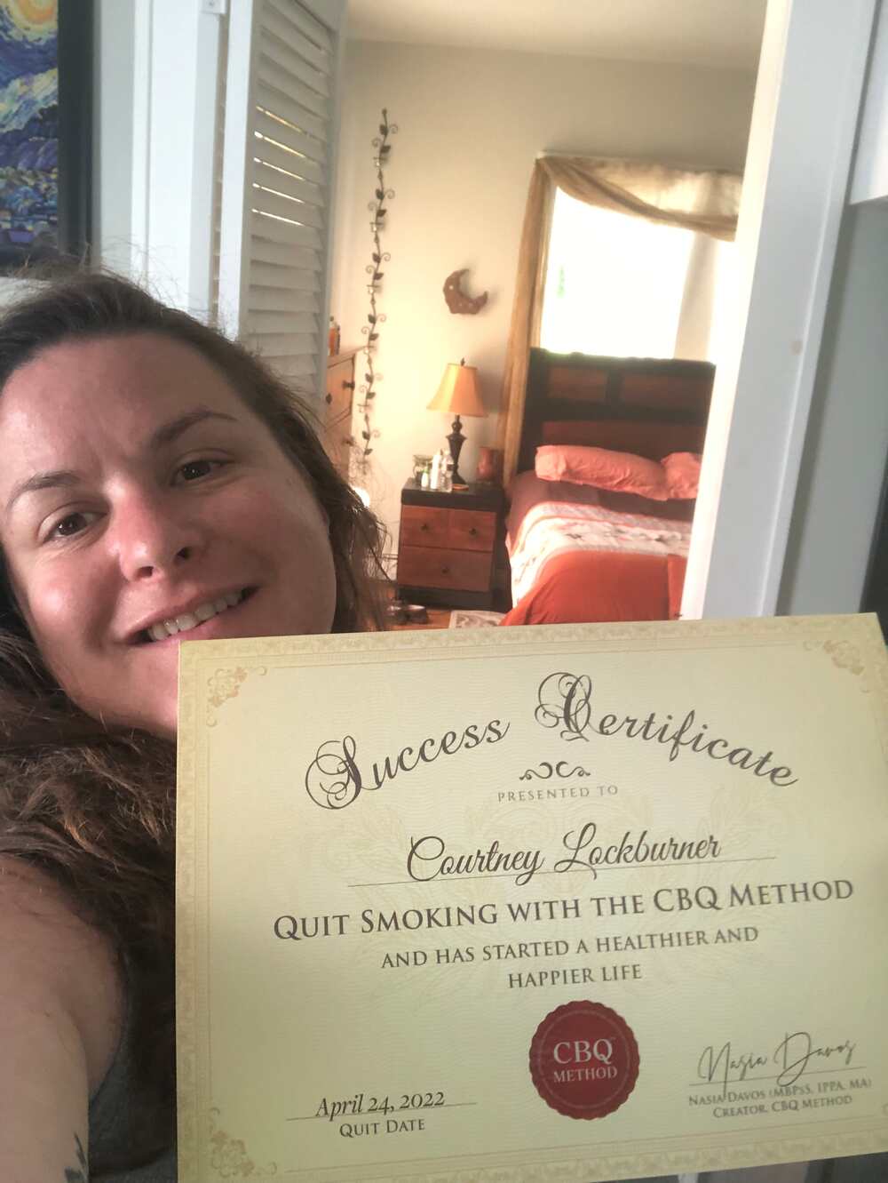 This is Courtney with her CBQ Success Certificate: