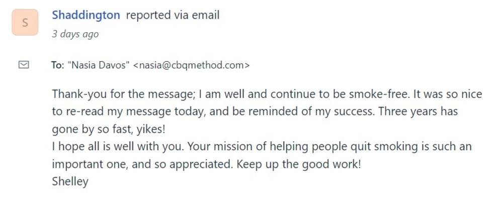3 years later, Shelley is happily smoke-free. What’s more, the last 3 years went by in a flash.