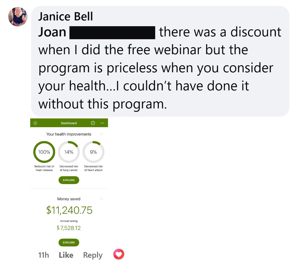 “It was priceless when you consider your health!” She has saved over $11,000!