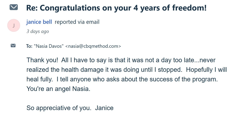 When she found the CBQ Method, she had just been diagnosed with early-stage emphysema and after attending the free masterclass, Janice decided to join the program.