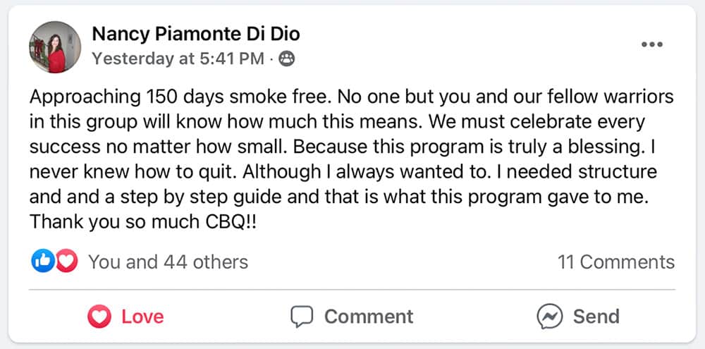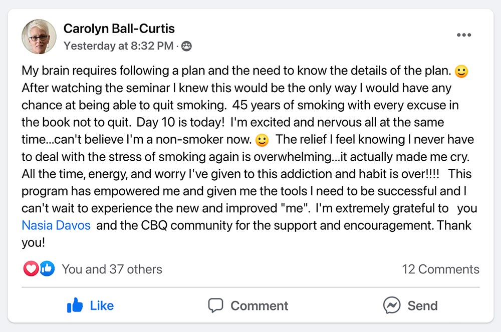 Nancy always wanted to stop smoking but never knew how. The step by step approach of the CBQ Method helped her break free!
