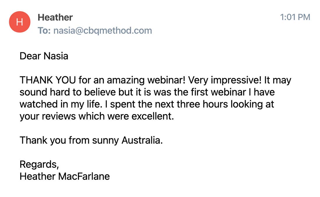 Heather from Australia found the webinar impressive!