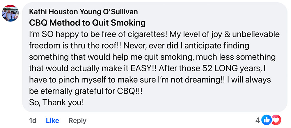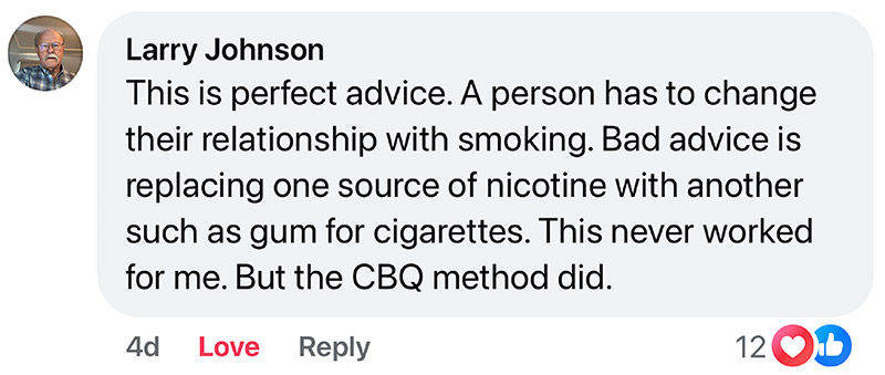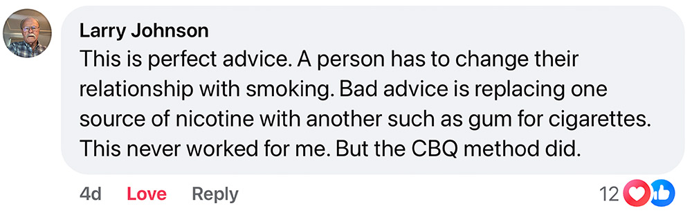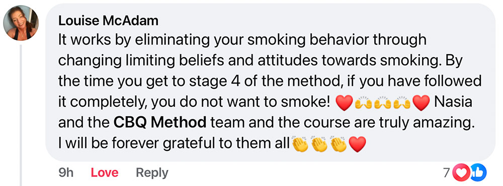 And that’s exactly what the method I developed, which I call the CBQ Method, is designed to do: reprogram your mind back to that of a non-smoker.