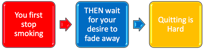 Here’s what happens when we use our willpower to stop smoking cigarettes: we first stop smoking and then wait for our desire to smoke to fade away and disappear.