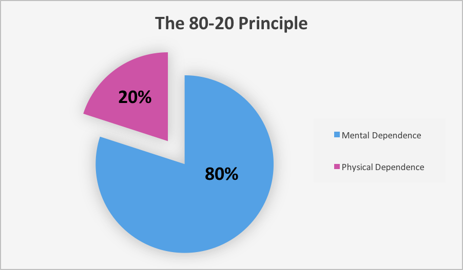 To be precise, 80% of the smoking addiction, is made up of the mental dependence on smoking.